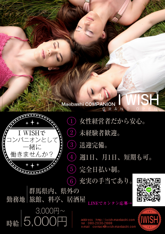 電話、メール(contact@iwish-maebashi.com)、公式LINEから、ご応募頂けます。